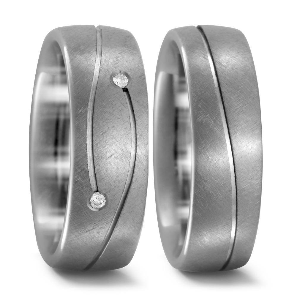 Moderner Partnerring aus robustem Titan mit mattierter Oberfläche und feiner, glänzender Linie als Designelement. Der Ring besticht durch seine zeitlose Eleganz und ist ideal für Paare, die ein langlebiges Symbol ihrer Verbundenheit suchen. Leicht und hautverträglich.