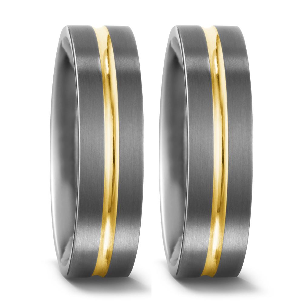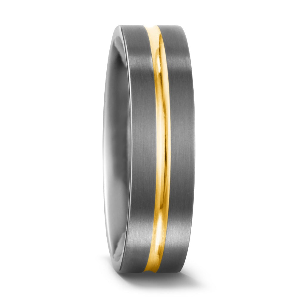 Eleganter Partnerring aus robustem Titan mit einer edlen Einlage aus 750er Gelbgold. Das zeitlose Design vereint moderne Eleganz mit hoher Langlebigkeit – perfekt für symbolträchtige Momente und ein Leben voller gemeinsamer Erinnerungen. Komfortabel und stilvoll zugleich.