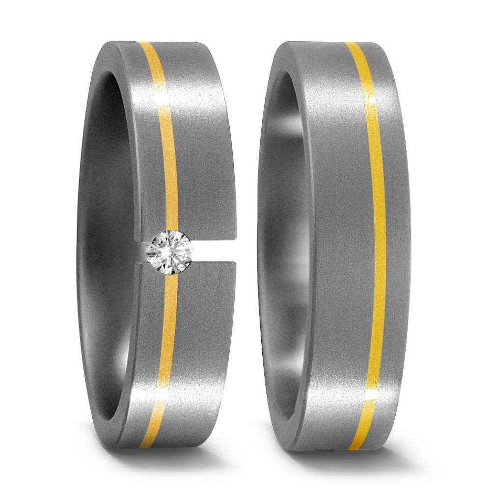 Partnerring Titan, 750/18 K Gelbgold Diamant 0.05 ct, w-si