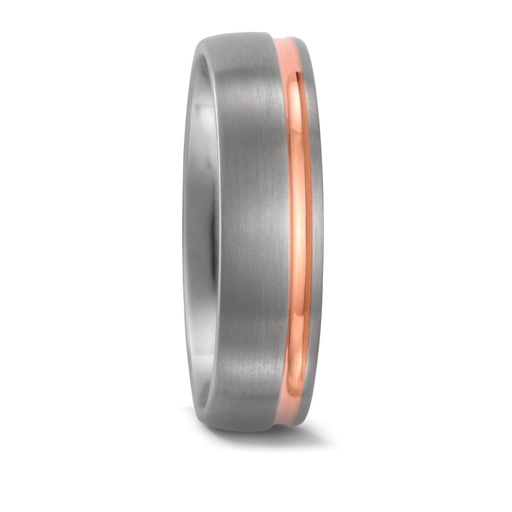 Eleganter Partnerring aus widerstandsfähigem Titan mit einem edlen Einsatz aus 750er Rotgold. Das moderne Design verbindet robusten Tragekomfort mit stilvoller Eleganz und ist perfekt für Paare, die zeitlose Verbundenheit zeigen möchten. Ein Symbol für Liebe und Beständigkeit.
