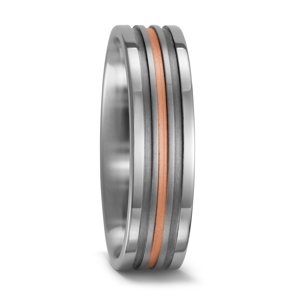 Moderner Partnerring aus robustem Titan mit edler Akzentlinie aus 750er Rotgold. Die Kombination aus kühlem Silber und warmem Rotgold verleiht dem Ring einen einzigartigen Look – perfekt für alle, die zeitlosen Stil und langlebige Qualität schätzen.