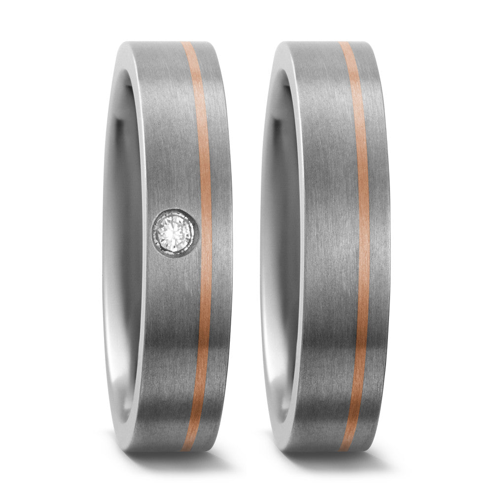Partnerring Titan, 750/18 K Rotgold Diamant 0.05 ct, w-si