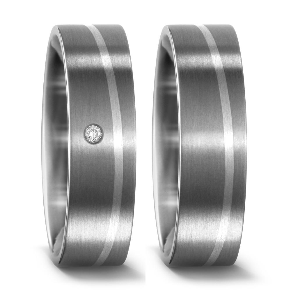 Moderner Partnerring aus widerstandsfähigem Titan mit elegantem Einsatz aus 950 Palladium. Das matte Finish und die dezente Linie machen diesen Ring zu einem stilvollen Symbol für Verbundenheit und Langlebigkeit. Ideal für Paare, die Wert auf Qualität und Design legen.