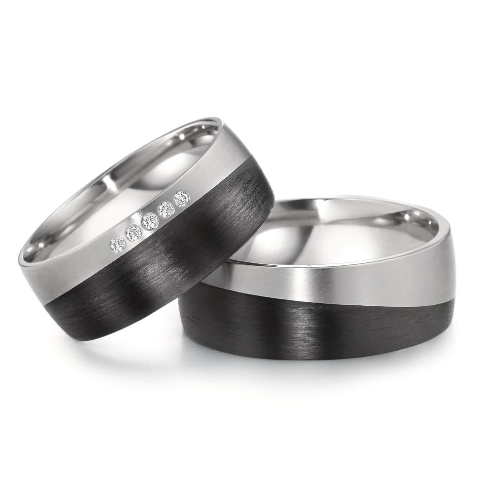 Moderner Partnerring aus hochwertigem Titan kombiniert mit elegantem Carbon. Die matte Oberfläche des Titans trifft auf die strukturierte Optik des Carbon, was diesen Ring zu einem stilvollen und robusten Symbol für Ihre Partnerschaft macht. Leicht und langlebig – perfekt für den Alltag.