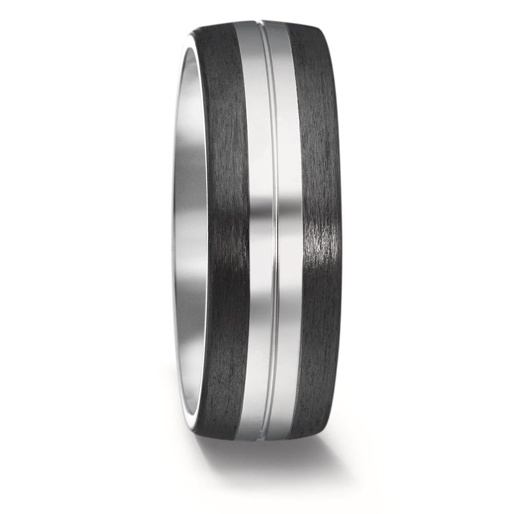 Moderner Partnerring aus leichtem Titan mit elegantem Carbon-Inlay. Die Kombination aus silbernem Titan und schwarzem Carbon verleiht dem Ring eine stilvolle und maskuline Optik. Perfekt für Paare, die Wert auf zeitloses Design und besondere Materialien legen.