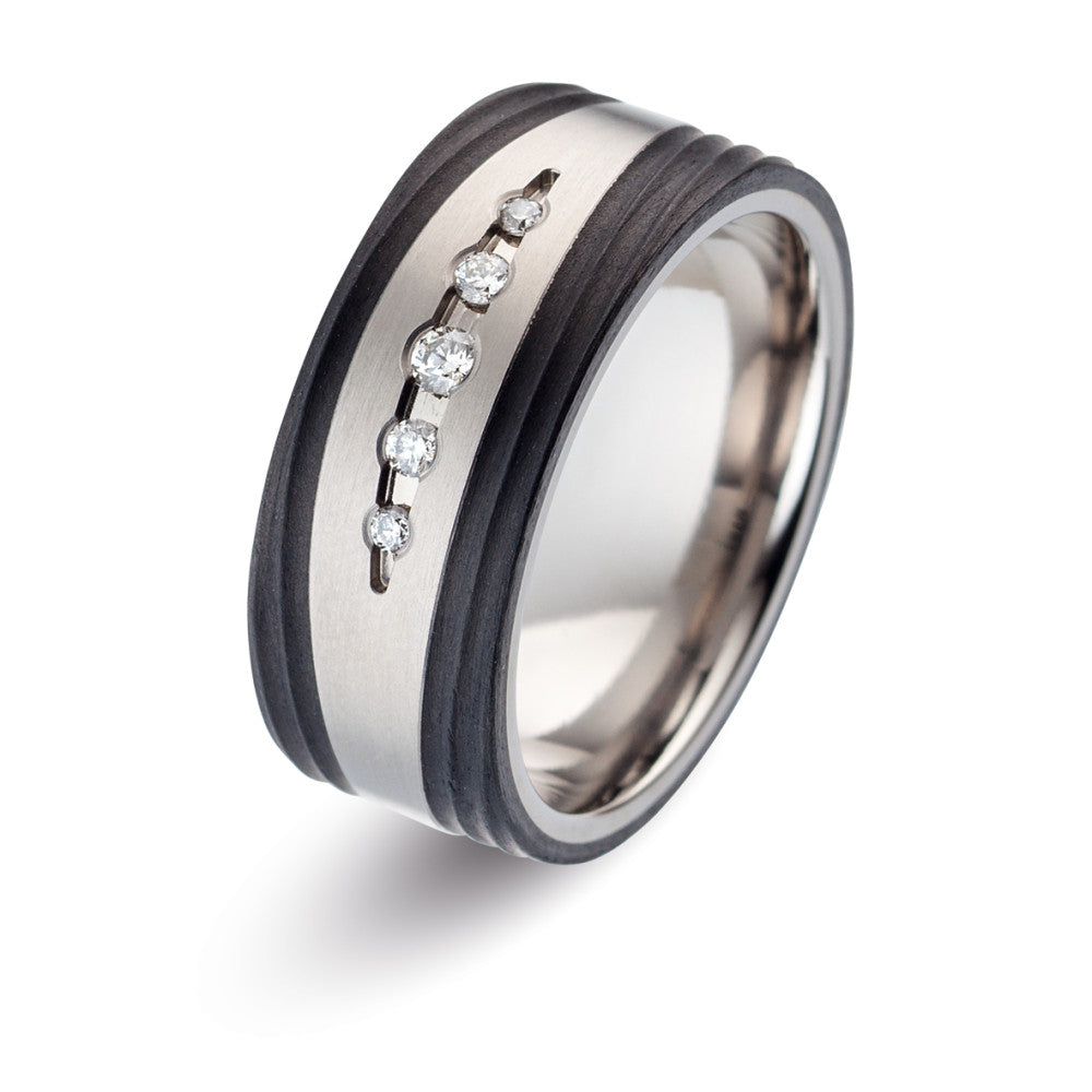 Partnerring Titan, Carbon Diamant 0.09 ct, 5 Steine, w-si