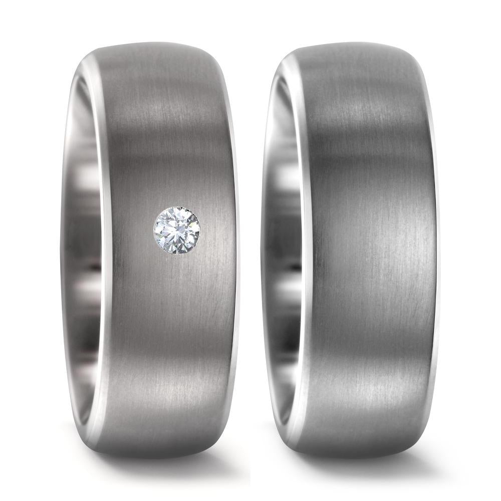 Zeitlos eleganter Damen-Partnerring aus robustem Titan mit einem funkelnden Diamanten als Highlight. Der matte Ring besticht durch klare Linien und höchste Qualität, perfekt für Paare, die Beständigkeit und Stil in einem Schmuckstück vereinen möchten.