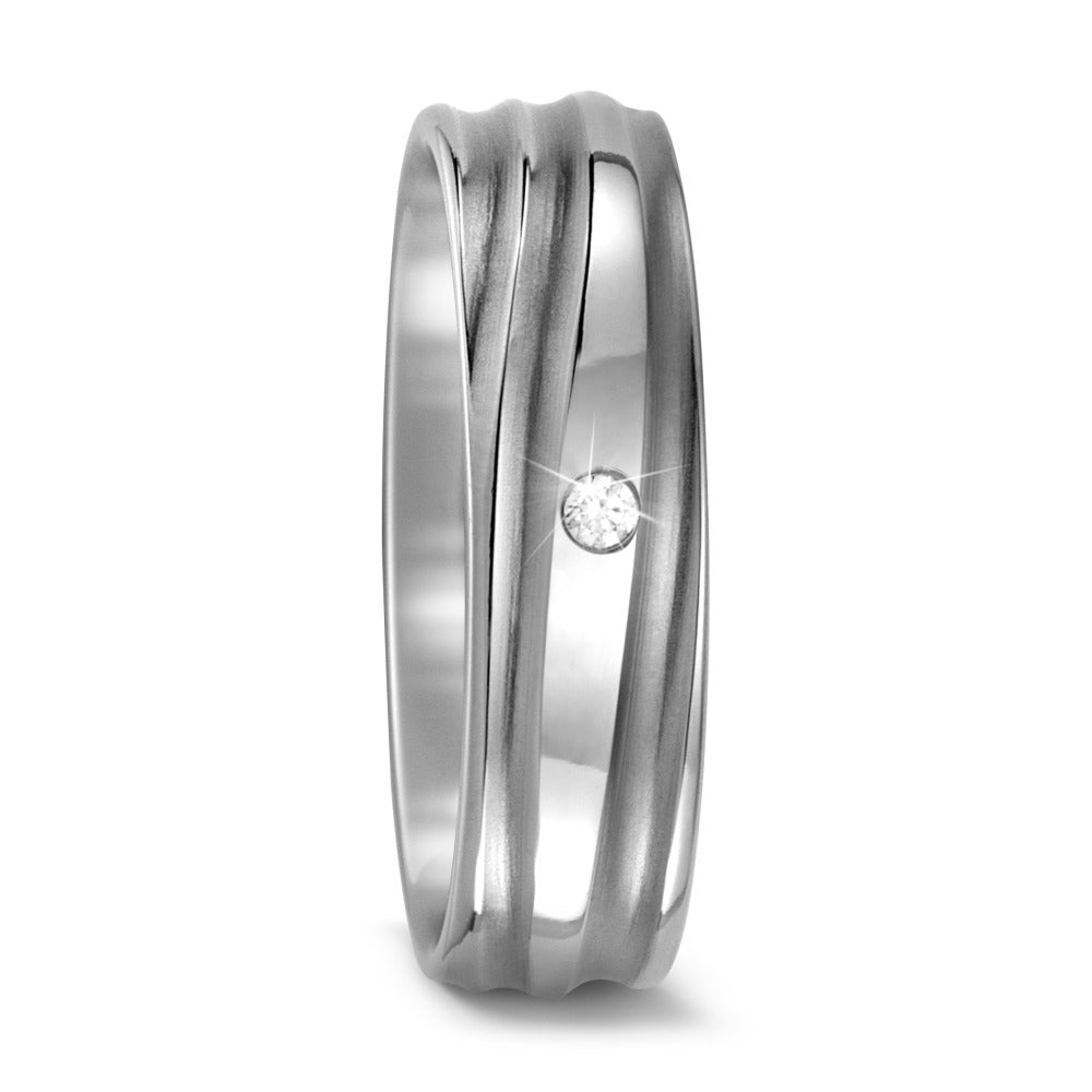 Eleganter Damen-Partnerring aus robustem Titan mit einer markanten, modernen Struktur. Veredelt wird der Ring durch einen funkelnden Diamanten, der dem Schmuckstück eine zeitlose und edle Ausstrahlung verleiht. Perfekt für besondere Momente zu zweit.