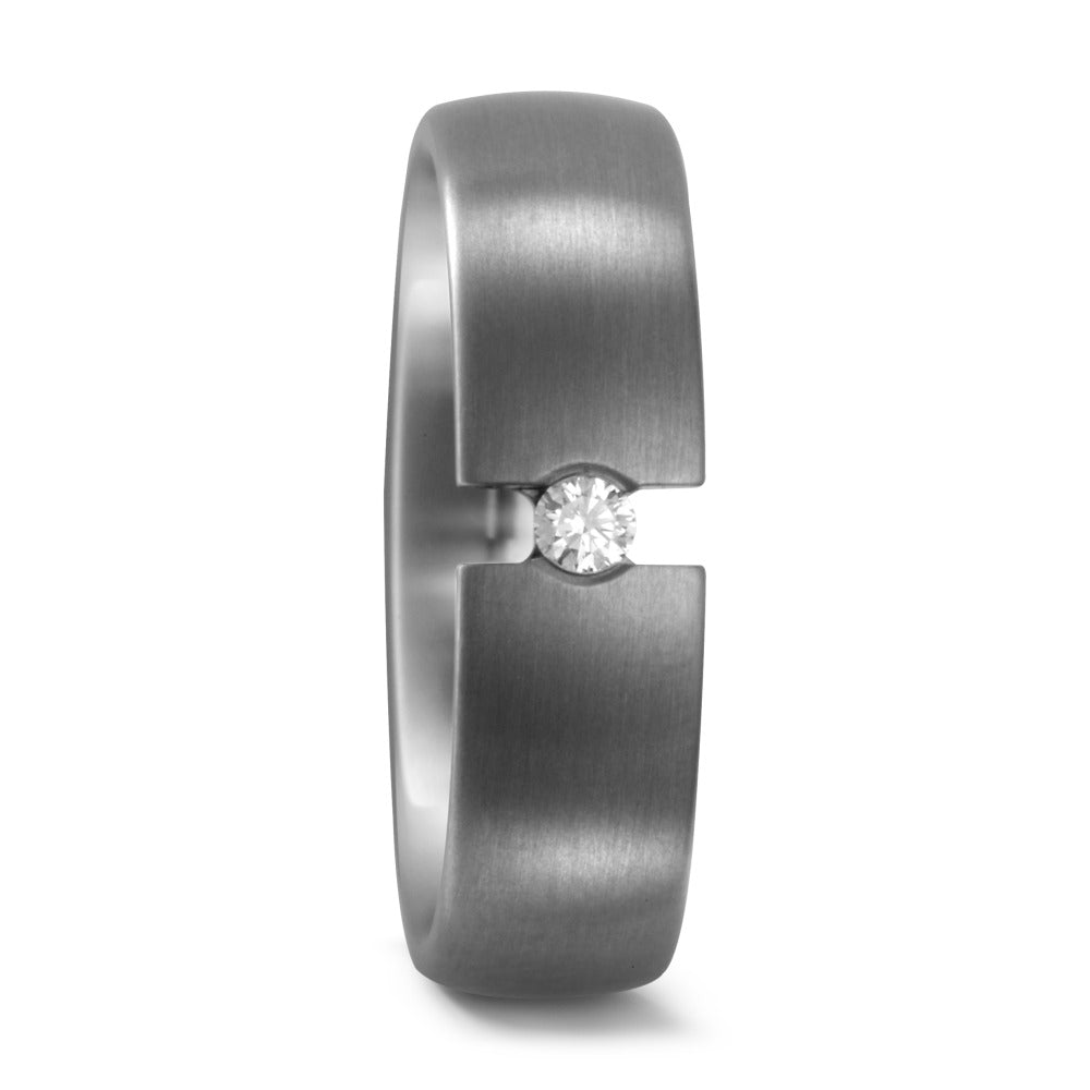 Eleganter Damen Partnerring aus robustem Titan mit mattem Finish. Im Zentrum sitzt ein funkelnder Diamant, der dem Ring eine edle Note verleiht. Perfekt für Paare, die moderne Schlichtheit und hochwertige Materialien schätzen. Ein Schmuckstück für die Ewigkeit.