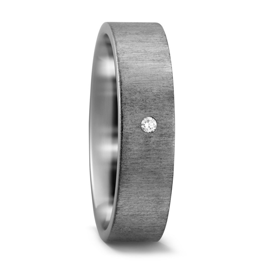 Eleganter Damen-Partnerring aus robustem Titan mit mattierter Oberfläche. Verziert wird der Ring durch einen funkelnden, kleinen Diamanten, der ihm eine dezente, edle Note verleiht. Perfekt für zeitlose Liebe und stilbewusste Frauen.