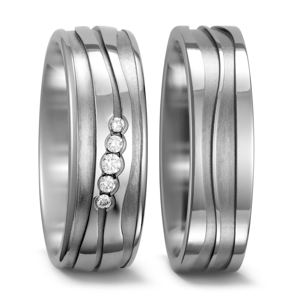 Partnerring Titan Diamant weiss, 0.07 ct, 5 Steine, w-si
