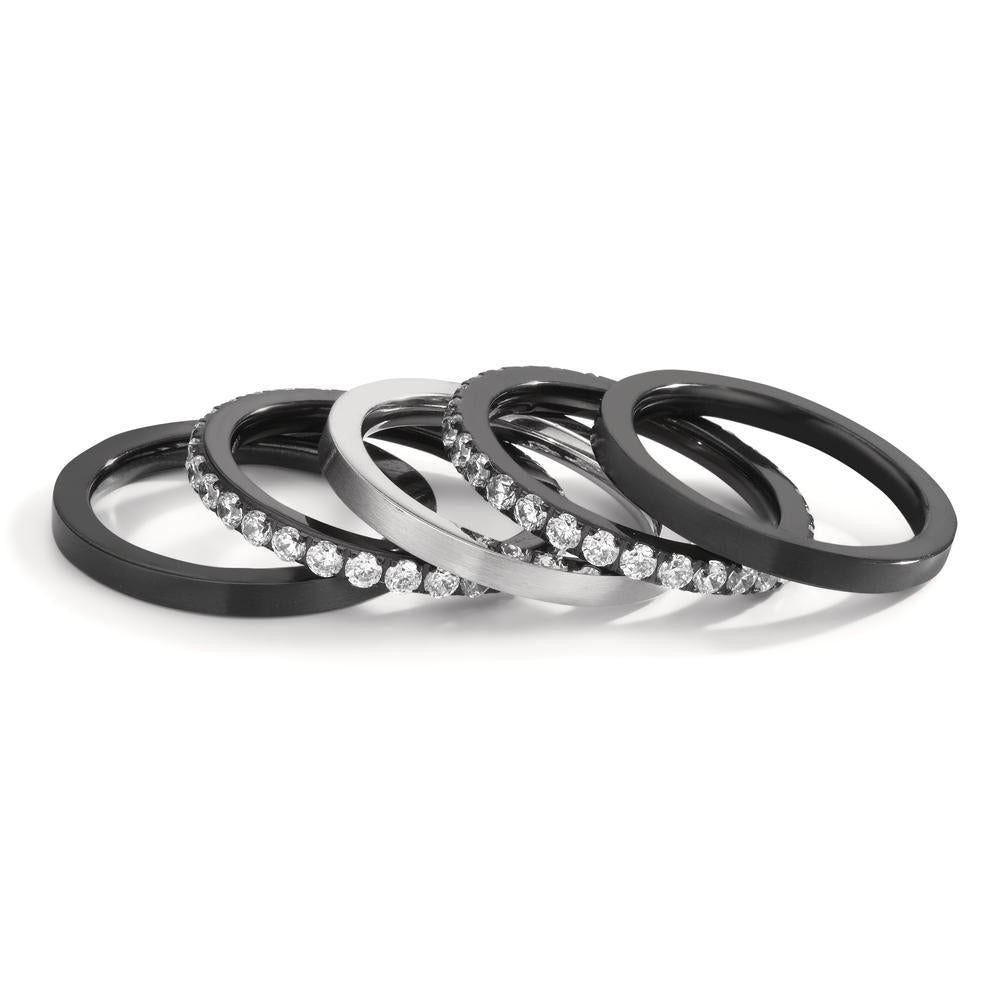 Dieses elegante Damen Ringset verbindet schwarzen und silbernen Edelstahl mit funkelnden Zirkonia-Steinen. Das dreiteilige Design besticht durch zeitlose Eleganz und hochwertigen Glanz – perfekt für jeden Anlass und stilbewusste Frauen, die edle Akzente setzen wollen.