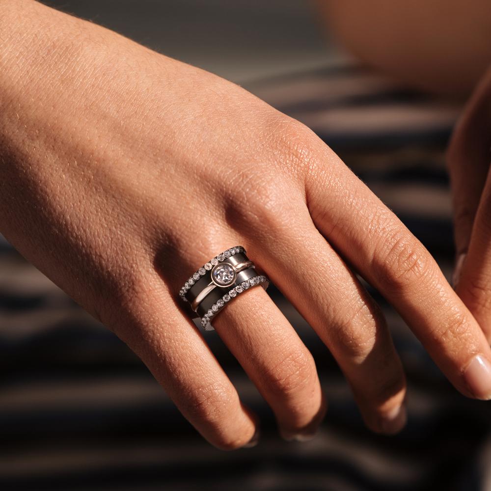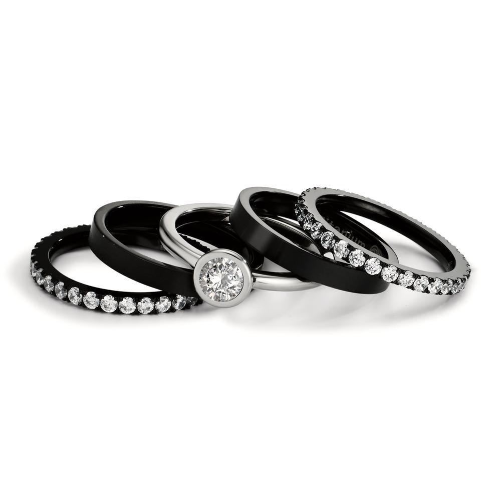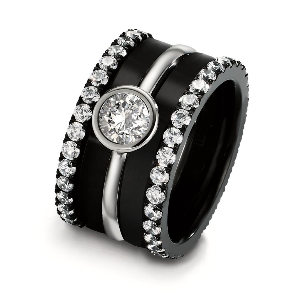Dieses elegante Damen Ringset vereint modernes Design mit funkelnden Zirkonia-Steinen. Die Kombination aus schwarzer Basis und silbernen Details macht es zu einem echten Hingucker. Ideal für besondere Anlässe oder den Alltag – setzt stilvolle Akzente an jedem Finger.