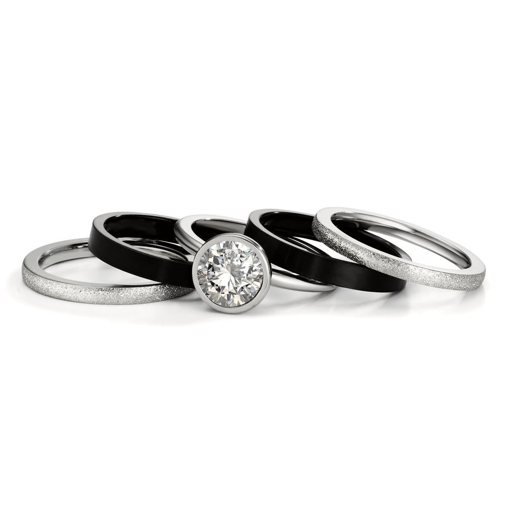 Dieses Damen Ringset besticht durch modernes Design mit schwarzem Einsatz und funkelndem Zirkonia-Stein. Die Kombination aus matten und glänzenden Details verleiht dem Schmuckstück Eleganz und Vielseitigkeit – perfekt für jeden Anlass. Ein Must-have für modebewusste Frauen.