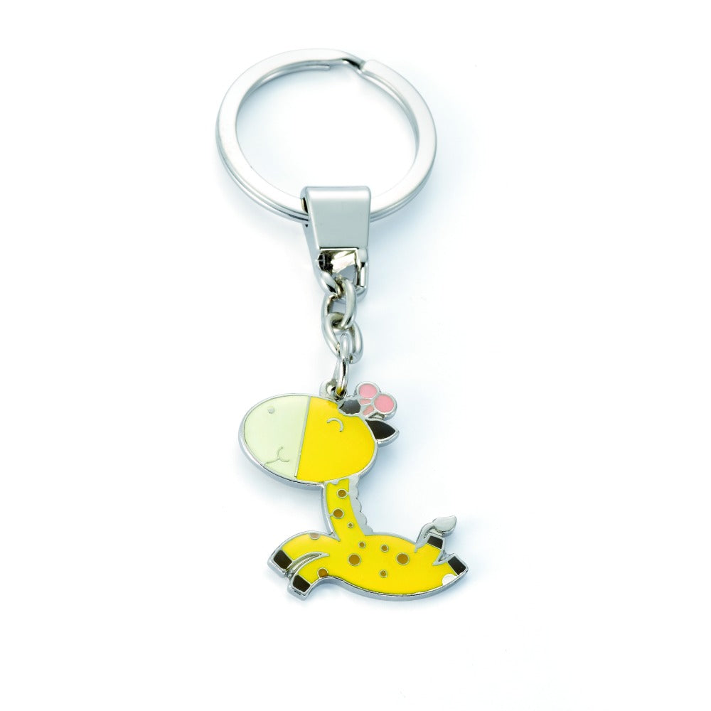 Liebevoll gestalteter Metall-Schlüsselanhänger mit niedlicher Gelb-Weißer Giraffe als Anhänger. Der robuste Ring hält Ihre Schlüssel sicher zusammen und sorgt für einen fröhlichen Blickfang. Perfekt als kleines Geschenk oder Accessoire für den Alltag.