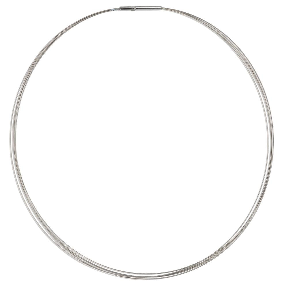 Elegantes Damen-Collier aus hochwertigem Edelstahl. Das schlichte Design mit feinen, parallelen Drähten sorgt für zeitlose Eleganz und vielseitige Kombinierbarkeit. Robust, hautverträglich und ideal für jeden Anlass – ein stilvoller Begleiter für Ihren Look.