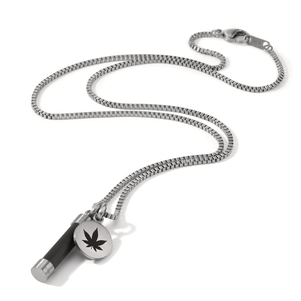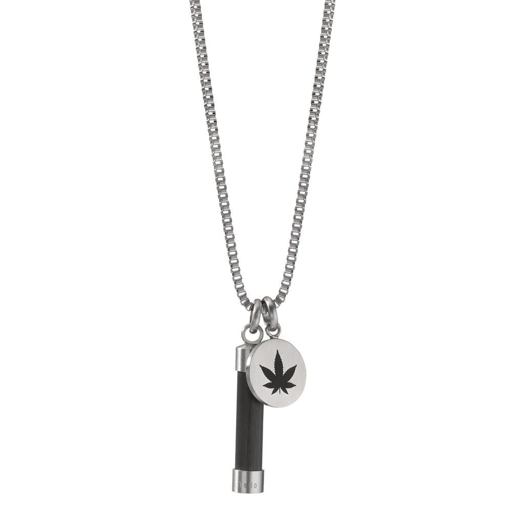 Signature Kette Cannabis Carbon und Edelstahl emailliert 60 cm