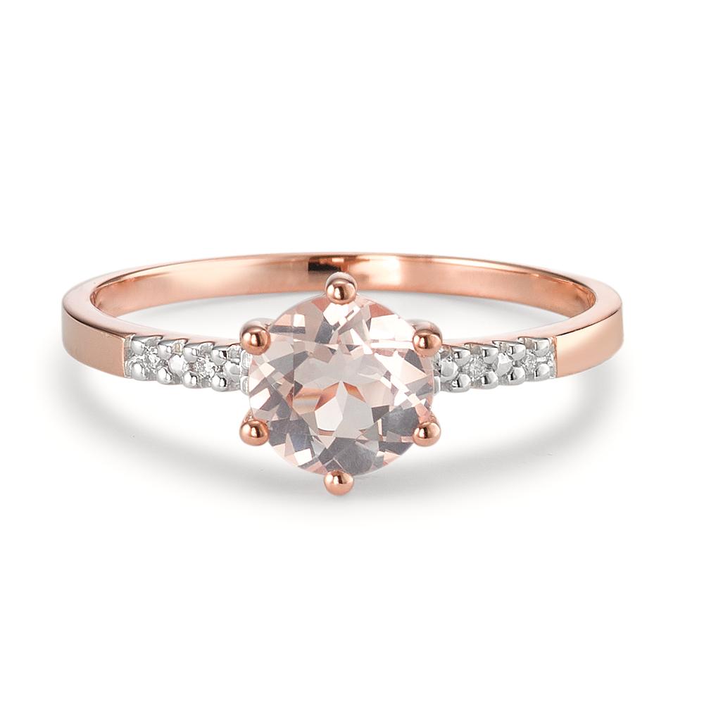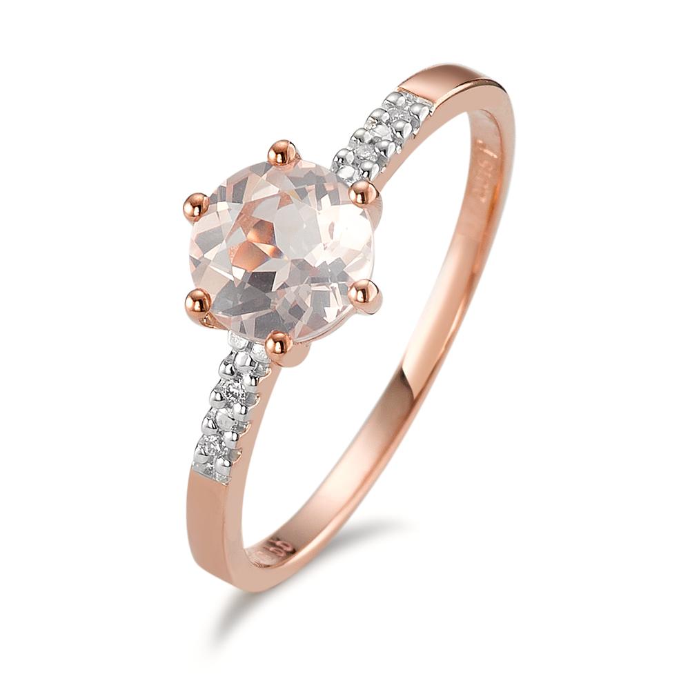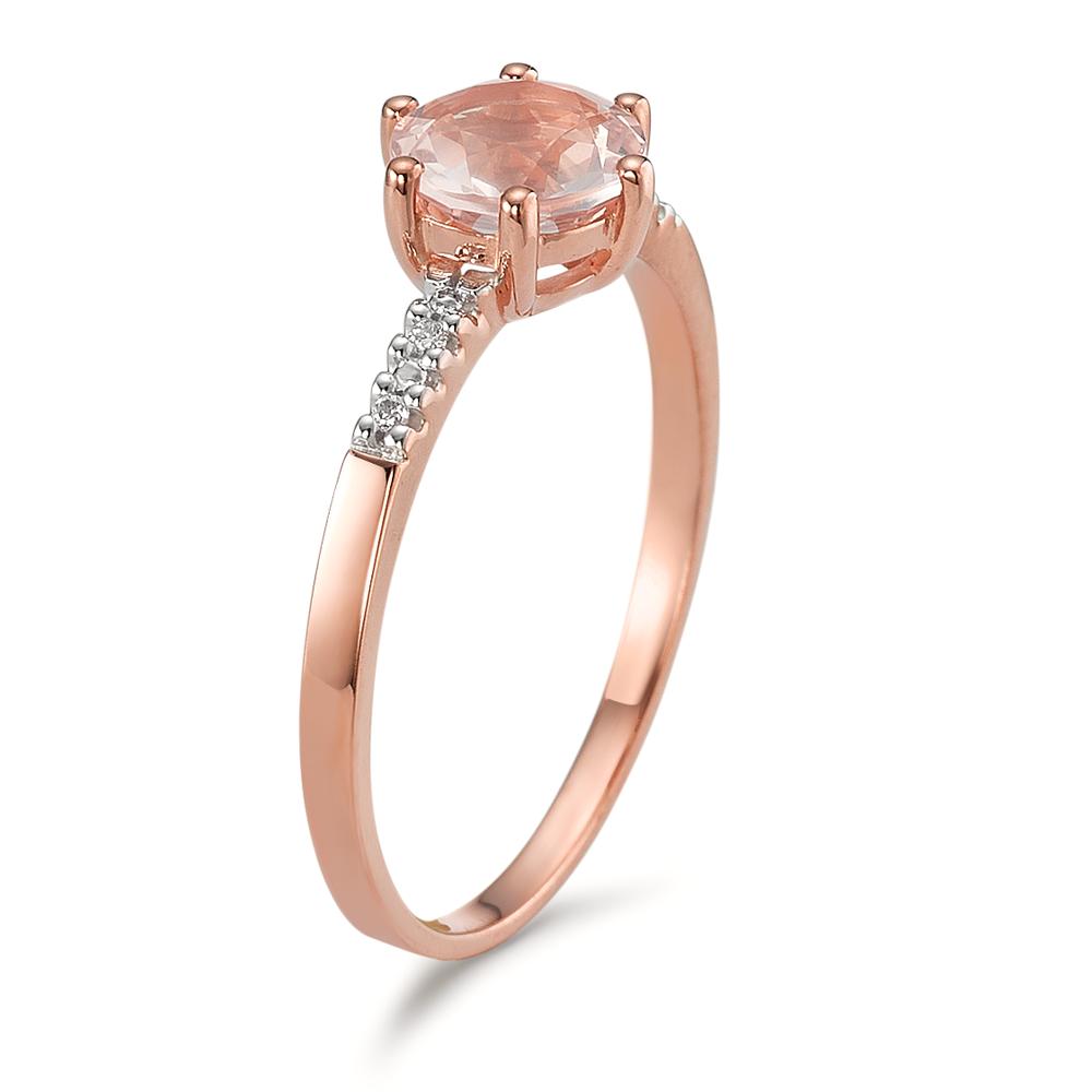 Solitär Ring 375/9 K Rotgold Diamant 0.015 ct, 5 Steine, p1, Rosenquarz bicolor Ø6 mm