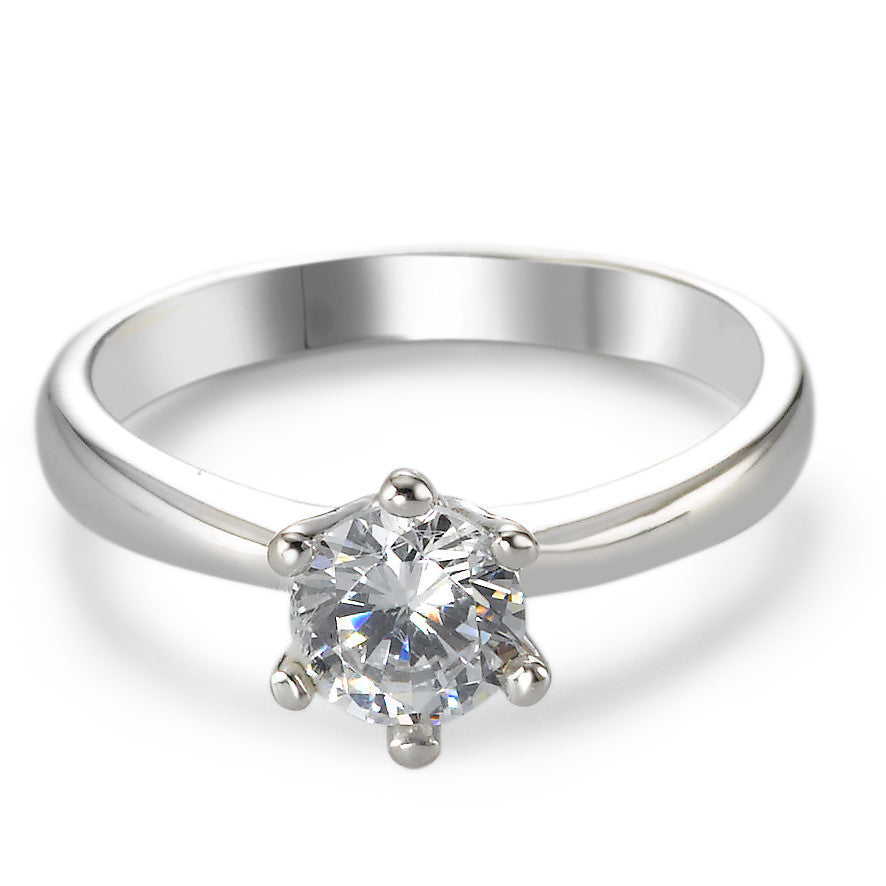 Solitär Ring Silber Zirkonia 5.5 mm rhodiniert