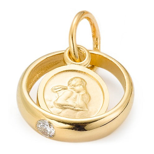 Taufring 375/9 K Gelbgold Diamant 0.03 ct, w-pi1 Schutzengel Ø10 mm
