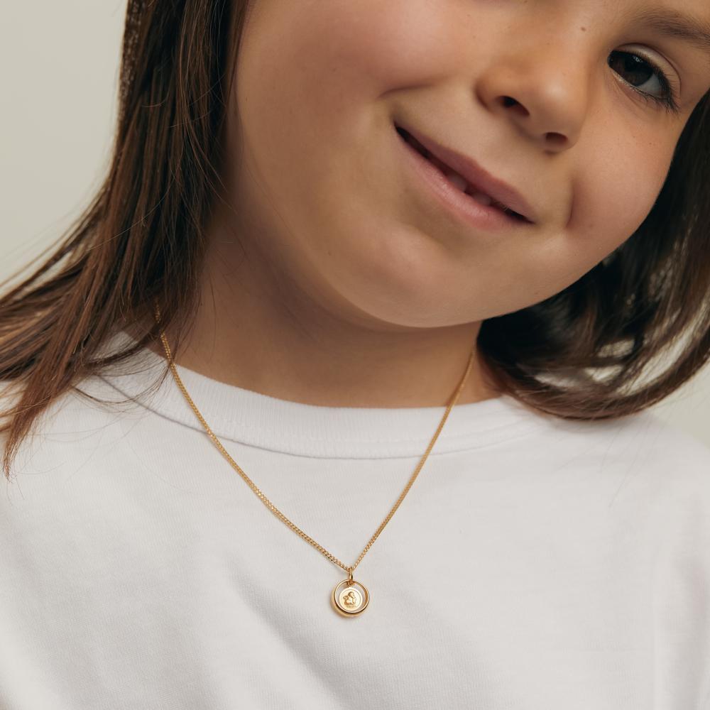 Wunderschöner Baby-Taufring aus 375er Gelbgold mit funkelndem Diamanten. Der Anhänger zeigt einen Schutzengel, der symbolisch Geborgenheit und Sicherheit schenkt. Ein liebevolles Geschenk zur Taufe, das Schutz und Segen fürs Leben symbolisiert.