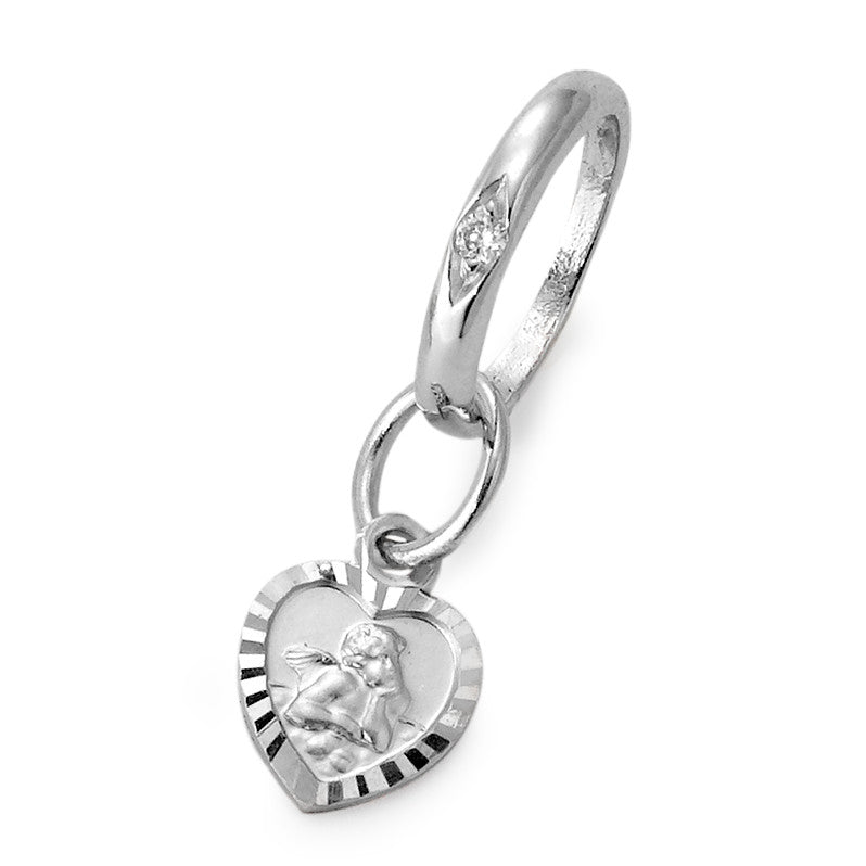 Zauberhafter Baby Taufring aus hochwertigem 750 Weißgold mit funkelndem Diamanten. Das zarte Herzanhänger-Design zeigt einen liebevollen Schutzengel als besonderen Begleiter für Ihr Baby. Ein zeitloses Schmuckstück voller Liebe und Schutz zur Taufe.